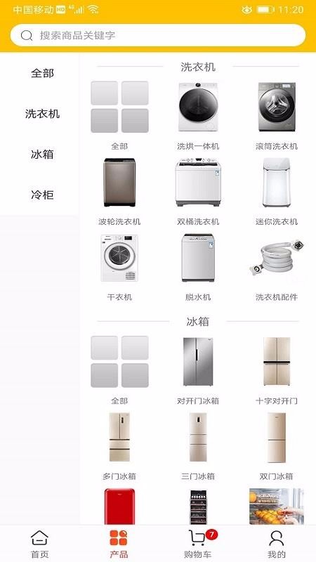 1、产品分类清晰,洗衣机、冰箱、冷柜等产品类型一目了然,挑选适合的产品购买;