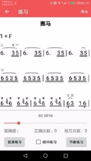 3、节奏练习,自己可以自由设置速度进行曲谱的播放,便于训练;