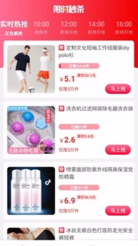 2、限时秒杀产品每天整点推出,用户可以在限定的时间内任意抢购;