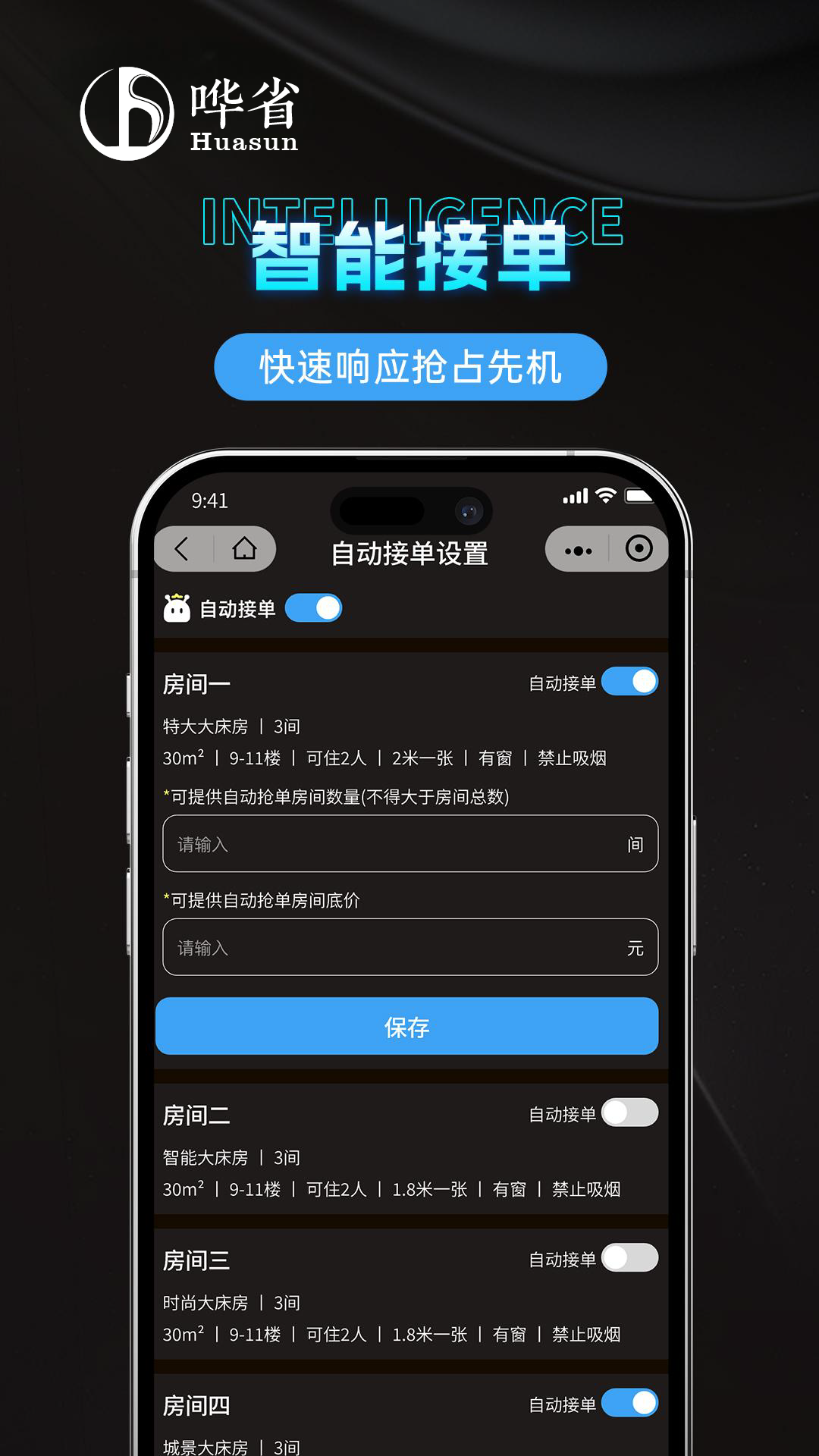 哗省订房商家版app是一款专为民宿酒店打造的实时抢单平台,通过聚合全网散客的住宿出价,为商家提供灵活的逆向竞价接单渠道。合作商家可根据实时房态与经营需求,自主筛选并抢接匹配的订单,高效盘活空置房源,快速提升客房转化与营收能力。