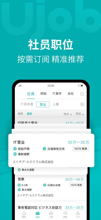 Ujob是专门为日华人打造的一款找工作神器,让日本华人留学用户轻松找到好工作;呈现日本职场内容,包含丰富的日本就职信息,超多行业热门高薪职位都有,如金融类、医疗类、建筑类、设计类、创作类等,您喜欢的工作都有,都能便捷查询到;有提供大量兼职工作信息,留学学生也能轻松找到适合的工作,利用课余时间办公,赚取生活费,积累工作经验;为了让日华人更好的寻找到喜欢的工作,可直接在线上平台与企业用户互动交流,更好的展现自己的专业能力,也全面了解职位信息,方便进行高薪求职。