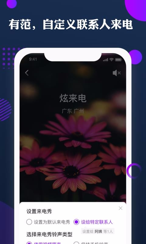 2、联系人来电背景自由的定义,不同的联系人可以设置不同的来电提醒;