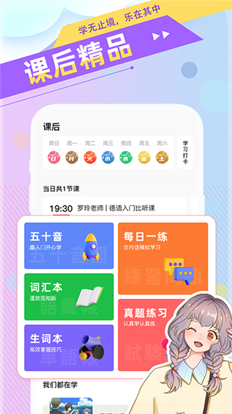 4、地道的口语日常学习,劳逸结合,趣味学习,提高学习沉浸感,在趣味学习中感受日语能力提升。