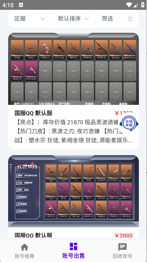 3、支持购买账号,用户可随时在软件上购买喜欢的游戏账号,非常方便。