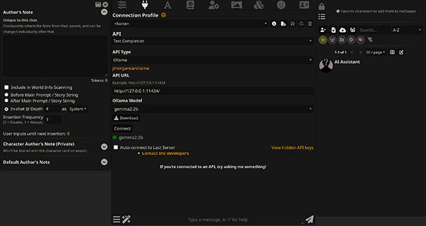 要在不选择角色卡片的情况下进行快速对话,或者只是测试 LLM 连接,只需在打开 SillyTavern 后在欢迎屏幕的输入栏中输入您的提示即可。这将创建一个空的"助手"角色卡片,您可以稍后自定义。