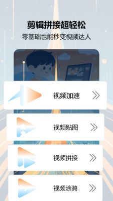 有视频加速、拼接、添加贴图及涂鸦编辑。