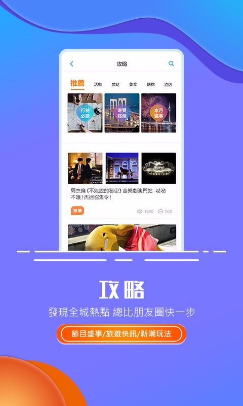 1、搜攻略,看资讯,寻美食,找活动,住酒店,集聚各种服务功能体验于一体,发现不一样的澳门;