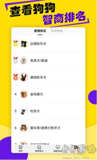 5、最后,在实用工具区域,还能查阅不同犬种的智商排行和年龄换算等趣味功能。