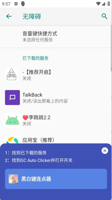 2、先禁用“无障碍服务”,再重新开启“无障碍服务”;或者您可以关闭并重新启动应用程序;或重启设备。