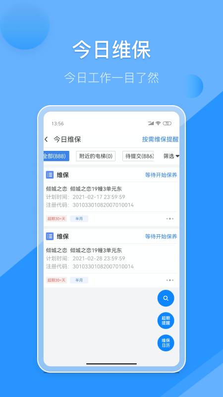 2、还可以查看需要维保的电梯信息,您就能知道电梯的位置;