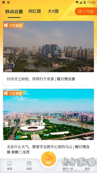 3、此处为直播区,包含实时直播、人气主播与知名博主直播,播出题材丰富多样。