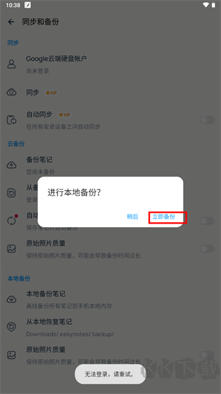 3、点击“立即备份”(如果备份失败,请先检查您的网络,重新尝试备份)