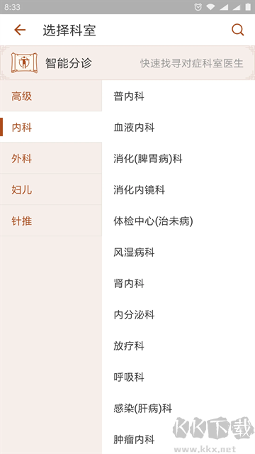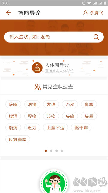 2、平台具备智能导诊服务,通过人体示意图,快速完成就诊;