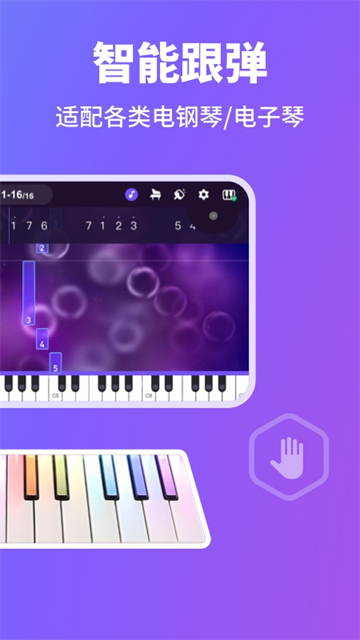 2、它不需要你懂得五线谱,它会告诉你什么时候该弹什么键。