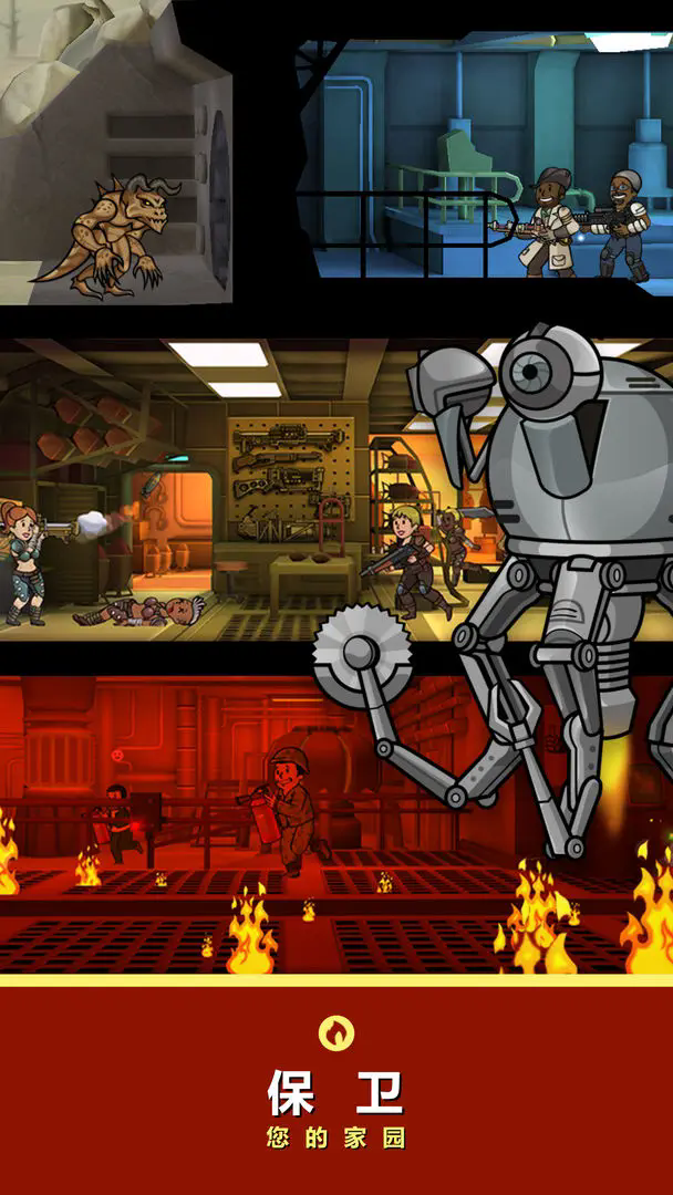 辐射避难所是一款很精彩的冒险游戏,在这里去好好的管理你避难所吧,不仅是为了自己,也是为了其他的人类,将他们都收到你的避难所中,大家一起努力的生存吧。