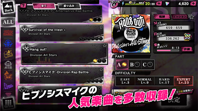 催眠麦克风日服(ヒプマイA.R.B)是一款趣味十足二次元音游养成乙女向游戏。高清电影版的画质,由动漫改编而成,玩家在这里可以享受原创的故事剧情,再搭配上豪华声优阵容全语音的配音演出,真的是一场完美音视盛宴。游戏采用降落点击式游戏玩法,还加入了音乐、战斗和剧情等多元化玩法,精美的人物立绘,原创故事情节,赌上角色的信念及激烈的领土战斗。在对战的过程中,玩家不仅能体验优秀的原创音乐作品,还能与主角们一起成长。这里有十八位个性十足的角色,他们分为六支音乐队伍同时展开激烈的Rap Battle。感兴趣的朋友们可以下载体验。