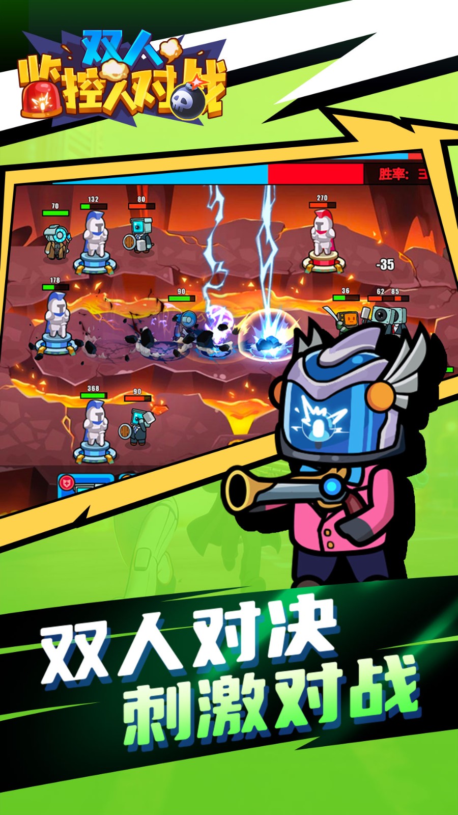 双人监控人对战是一款策略深度的角色对战游戏,涵盖多样化地图,布满可破坏物体与互动机关,玩家可选择监控人或马桶人阵营,前者凭高科技装备擅长远程封锁,后者靠灵活身法主打近战突袭,通过摧毁敌方防御塔获胜,反差萌设计与热血对战兼具。