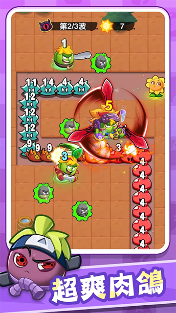 3、植物会自动攻击来袭的怪物,战斗中可不断刷新和合成植物,优化阵型应对敌人。