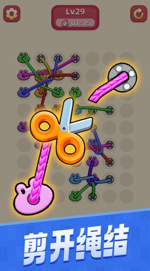 2、冻结道具优先用于多绳交叉、动态缠绕的复杂关卡,冻结后快速标记切割点,一气呵成完成操作。