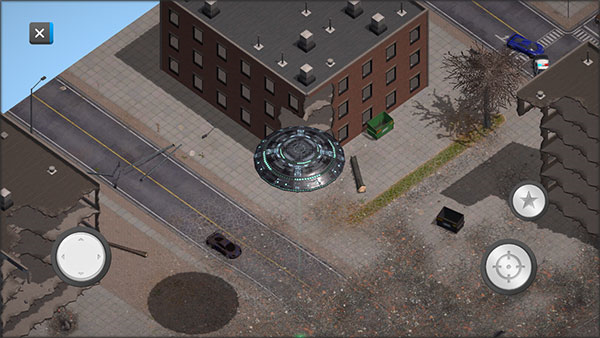 4.点击飞船图标,你甚至可以亲自驾驶UFO,从天际对城市进行精准打击。
