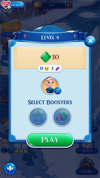 3、整个三消挑战充满了奇幻色彩,玩家需要和安娜等人一起修改冰雪迷阵,并一步又一步的解除自己姐姐艾莎施展的魔法。