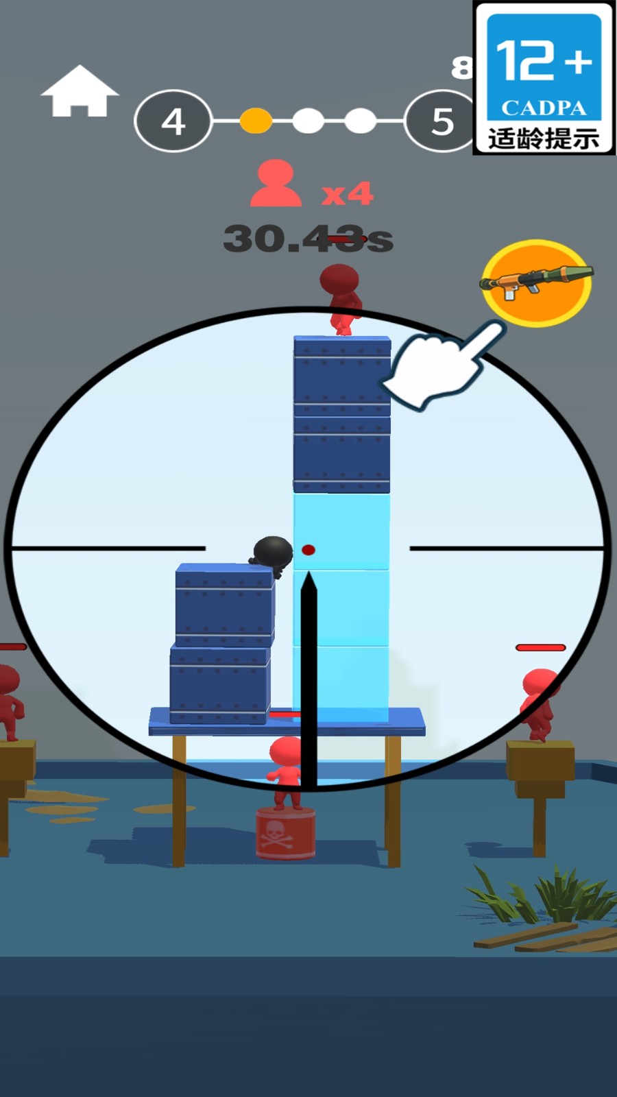 3、关卡难度逐步提升,敌方数量增多,场景布局更复杂,环境互动元素更丰富,持续考验射击与策略双重能力。