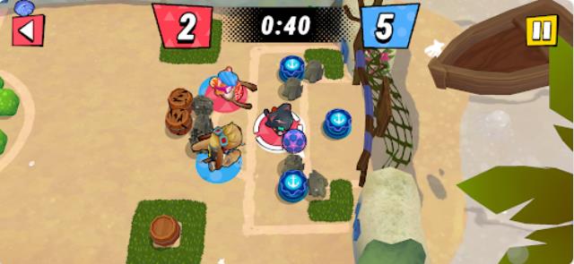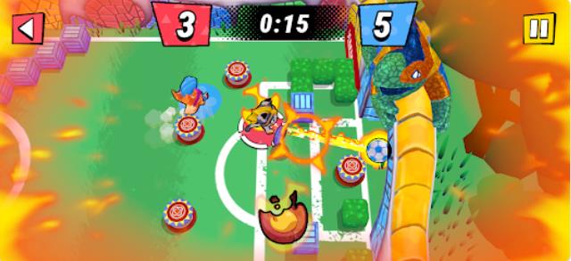 2、在球场上灵活操作角色,躲避障碍、利用道具,尽快将球推进对手的球门或篮筐。