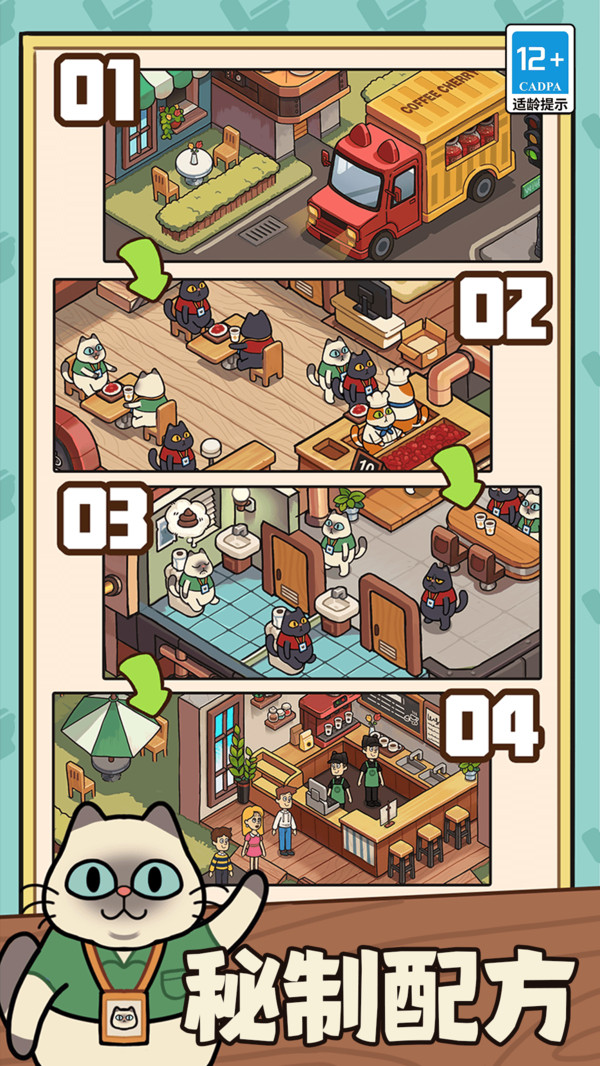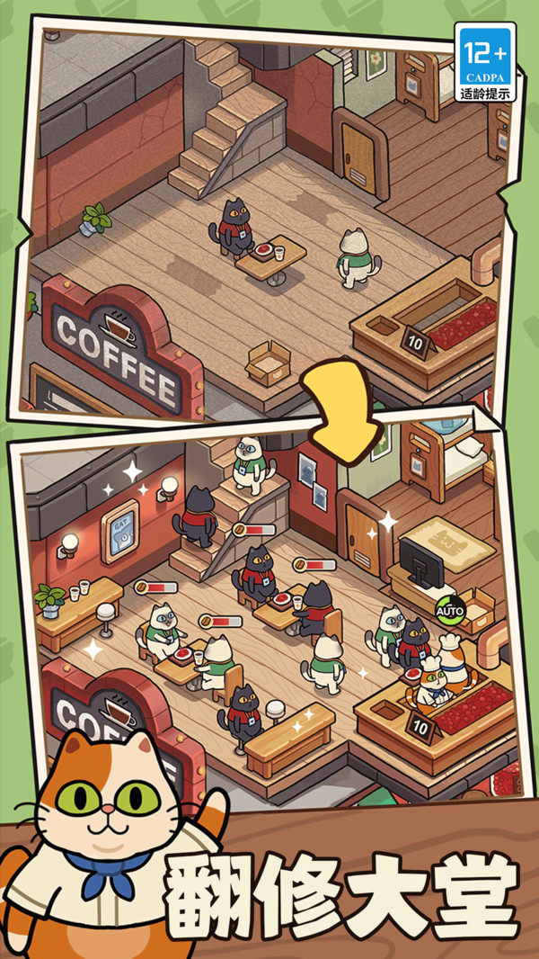 一家咖啡店是一款休闲模拟经营类游戏,游戏里玩家将扮演猫咖的老板,你可以挑选多种装修风格来布置你的店铺。你还需要招募服务员,这些服务员也是由猫咪扮的,更需要制作附和口味的咖啡,让你的顾客更加的满意,赚得更多的金币。